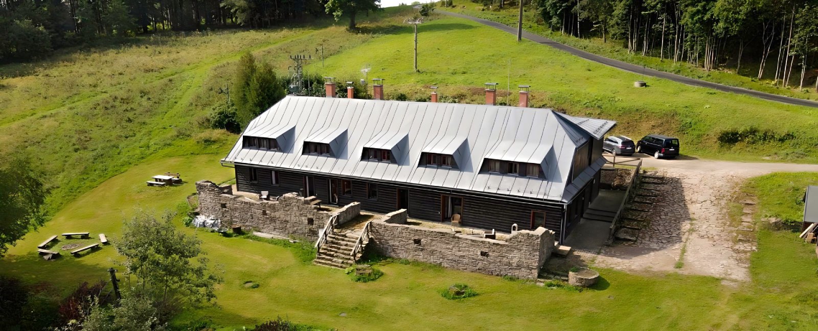 Dostanete se k nám po nové asfaltové cestě, která u nás končí a vůz zaparkujete v klidu na velkém soukromém parkovišti, které je přímo u penzionu.