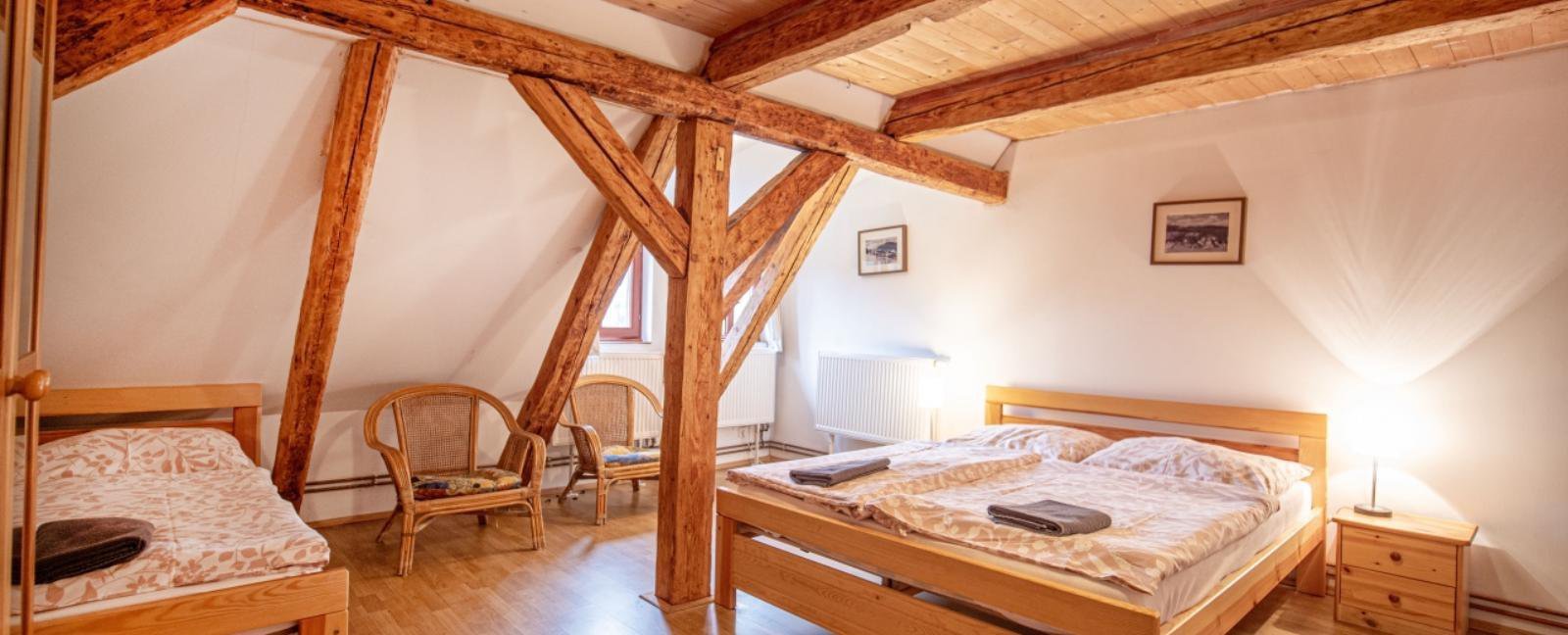 - 4 lůžka v jedné ložnici, z toho 1x manželská postel a 1x dvoupalanda