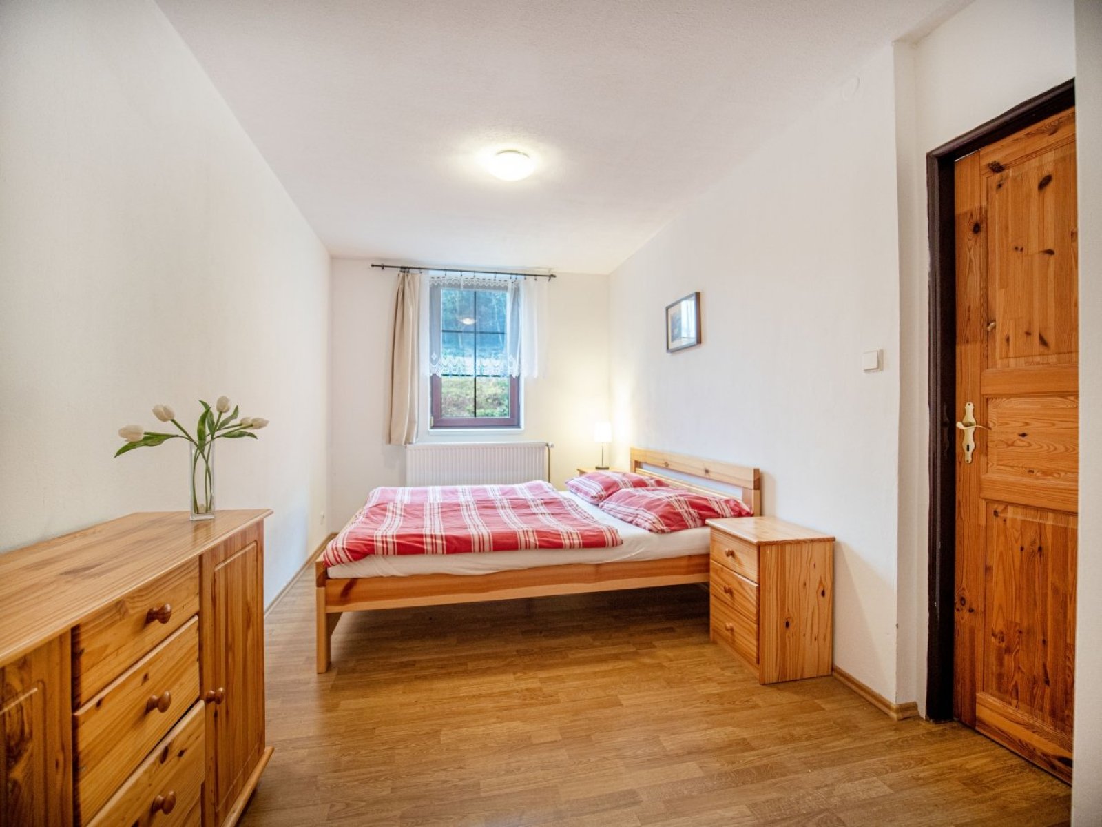 - 1 ložnice s dvěmi lůžky a průchozí místnost s dvoupalandou