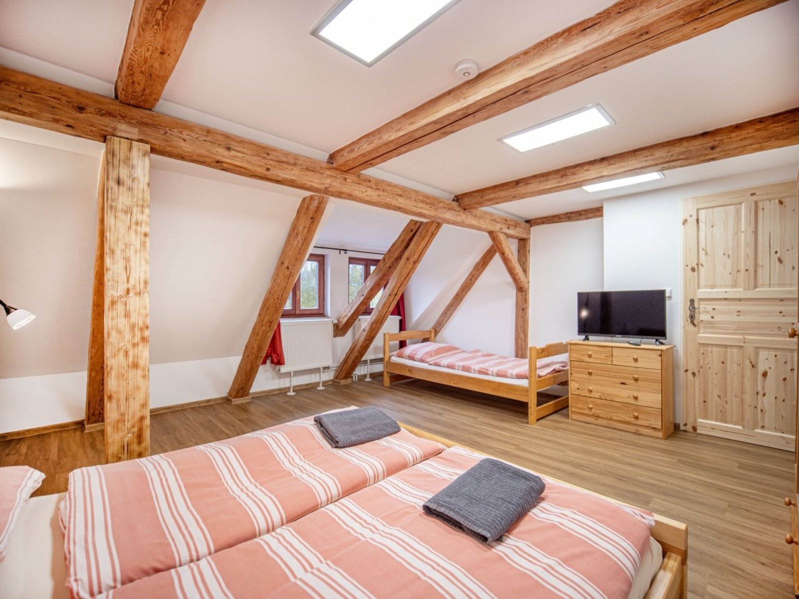 - 4 lůžka ve dvou ložnicích, možnost přistýlky v patře